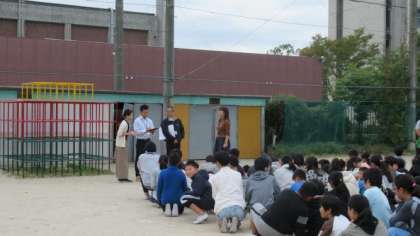 校長先生からは「お・は・し・も・て」の確認や,年に数回ではあるけれども命を守る大切な学習であるというお話がありました。また,避難を開始して,全校児童が運動場に集合するまでの時間がとても早かったことをほめていただきました。