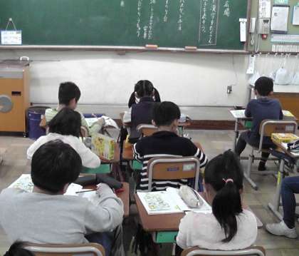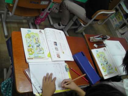 国語科「漢字の広場」の学習では,今までに学習した漢字を使って文章を作りました。今回は,挿絵にある町の様子を表す文章を書きました。出てきた言葉の中で「活気」という言葉の意味や使い方については国語辞典を使って確かめる様子も見られました。楽しく文章作りに取り組んでいました。