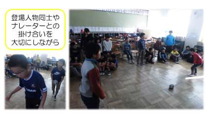 自分のセリフもしっかりと覚え,観客の人が聞きやすいように,声の大きさやセリフの速さを意識しながら練習を進めています。また,動きからも伝わるように工夫を取り入れている様子でした。明日はいよいよ通し練習です。本番を意識しながら練習に取り組んでくれることだと思います。