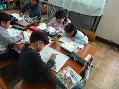 今日は自分がおうちのひとに紹介したい生き物を決め,よく観察して生き物の絵をカードに描きました。子どもたちは「この生き物のことはきっとおうちの人は知らないはず!」「こんなひみつがあることを早く教えてあげたい!」と今からわくわくしていました。