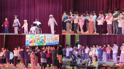 今年度より,日頃の学習の成果を幅広く発表するというねらいから,学習発表会と名称を変更しました。それぞれの学年がこれまで取り組んできたことをベースにして,舞台発表を行いました。