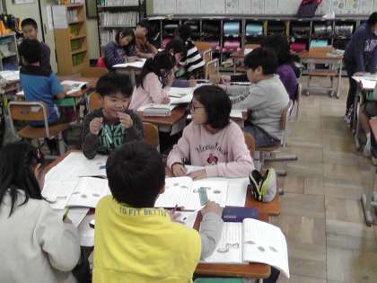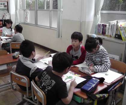 国語科「すがたをかえる大豆」の学習をしています。初めて読んだときに,筆者が分かりやすく説明していることに気づいたという意見がありました。今日は,筆者がどのように読み手に説明しているのか,どんなことを工夫しながら説明しているのか,友だちと一緒に考えました。ひとりでは見つからなかったことも友だちと話し合うと見つけることができます。「写真を使って分かりやすく説明していること」「つなぎ言葉を使って説明していること」「段落を進めるにつれて,だんだん難しい食べ方のくふうになっていること」などたくさん見つけていました。