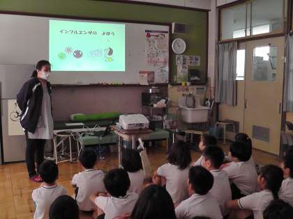 今日は3学期の身体計測でした。計測の前に健康について養護の篠本先生からお話がありました。今回は,インフルエンザについてのお話でした。咳エチケットのことや手洗い・うがいのことなど,たくさん聞かせていただきました。