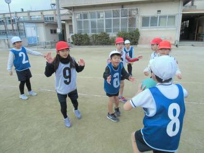 2年生の子どもたちは,体育科で,「パスゲーム」の学習を頑張っています。