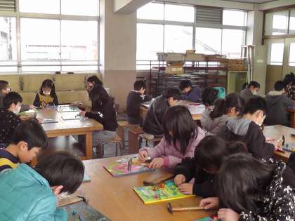 図工室で金づちを使って釘を打ってみると,みんな,初めてと思えないくらい上手に使っていました。どんどん板に釘を打ち,釘打ちゲームが出来上がってきています。18日から始まる作品展に展示する予定です。作品展で,ぜひ,お楽しみください。