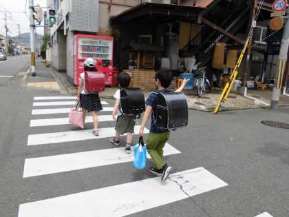 ☆横断歩道では手を挙げて渡ったり,1列に並んだりと安全に下校する1年生。かっこいいですね♪
