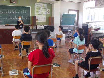 歌唱やリコーダー演奏の学習が今はできないため,今日は手を使ってリズム打ちをしました。2パートのリズムを合わせる難しいものでも,みんな息ぴったりでした。とても上手で感心しました。