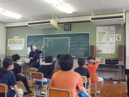 今日の音楽科では,はじめに「たなばた」の歌と「どんぐり」の歌を歌いました。なんと,2つの歌を同時に歌うと同時に終わるのです。子どもたちは,とても楽しそうに学習していました。