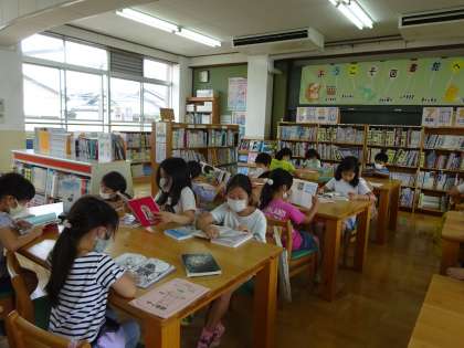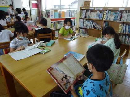 子どもたちは,どんな本を借りようかわくわくしながら選んでいました。本を選んだあとは,図書館での読書も楽しみました。