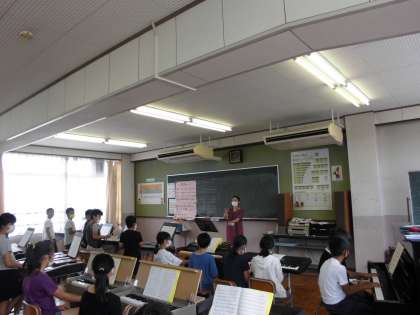 音楽科では,「アフリカンシンフォニー」の合奏練習です。今日ははじめの部分を練習しました。初めてでしたが,かっこいい出だしです。子どもたちも楽しそうです。