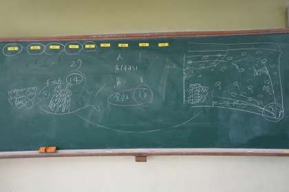 先日学級目標が決まりました。学級目標は「やればできる 〜学びの海にとびこんで 助け合いながら ぼうけんしよう〜」です。この学級目標には,くじけずに前を向きあきらめない気持ちをもって,学びの海にとびこんで自分で考え自分の力で進んでいこう。そして仲間と助け合いながら,挑戦する過程を楽しんでいこう。という思いが込められています。