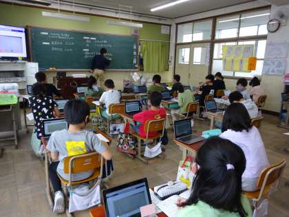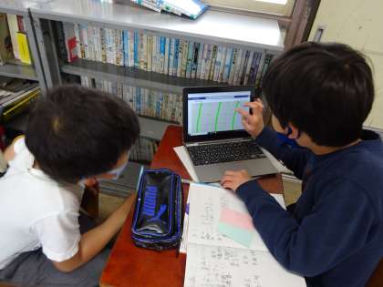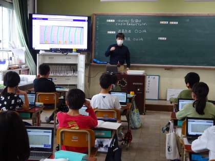 4年生は理科「天気と気温」の学習で,天気の変化を調べました。今日は,その結果をもとに,考察をしたりまとめたりしました。GIGA端末を活用することで,友だちへの説明もしやすくなったようです。