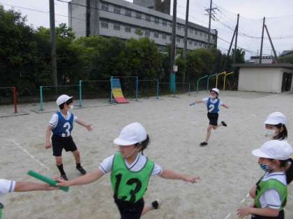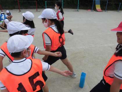 1時間目のリレーのバトンパスには,「リード」はありませんでした。学習の中で,スムーズなバトンパスが大切なことに気づき,練習方法を考え,話し合い,声をかけながら,全力でがんばっています。