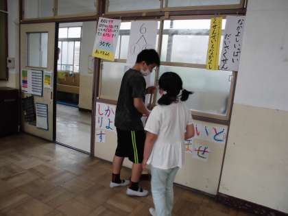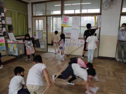 1時20分になると掃除が始まる曲が流れ,子ども達は一斉に遊びをやめ,担当の掃除場所に向かいました。