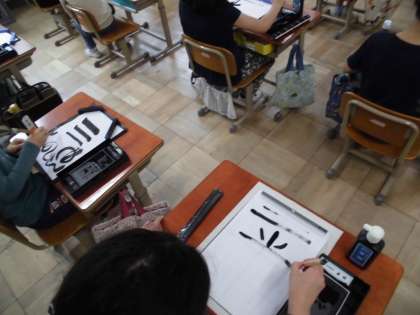 実際に筆を使い,線を書いてみると,力の加減によって線の太さが変わることや,筆の運び方が難しいことに気づくことができました。