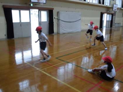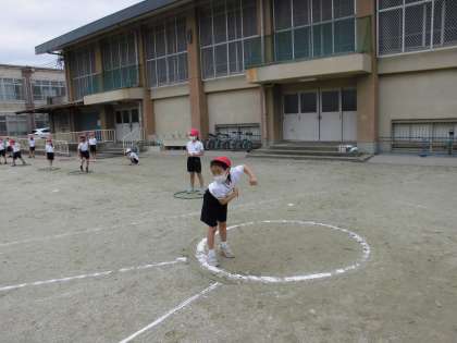 2年生で初めてした種目は,ソフトボール投げと反復横跳びです。ソフトボール投げは,遠くにいる大礒先生と羽田先生に届くように,大きく振りかぶる姿が見られました。また,反復横跳びは,リズムよく楽しそうに取り組んでいました。50m走と立ち幅跳びは1年生でもしていたので,1年生の時よりも記録を伸ばすぞ!と気合いが入っていました。