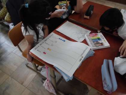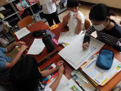 ご家庭で協力いただいた「買い物調べ」を持ち寄り,グループでグラフ化しました。