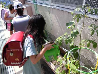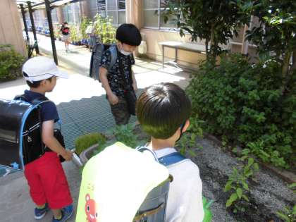 子どもたち同士で声を掛け合って,水やりを忘れないようにしている様子が見られます。