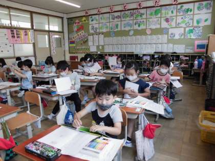 今日の学習はクイズ本の作成でした。初めての本づくりだったので少し大変だったようですがなんとか全員の本が完成しました。