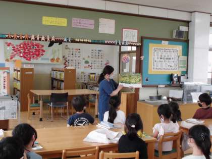 今日の服部先生の読み聞かせの本は,『タンポポのわたげ』でした。写真がきれい!面白かった!と感想を述べていました。シリーズ本で,『スミレとアリ』という本があり,さっそく手に取っているお友だちもいました。