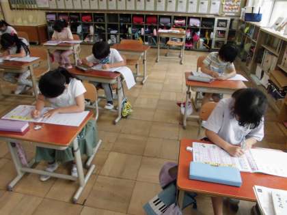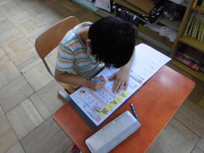 お手本を見て書くのは緊張すると言いながら,とても集中して学習に取り組んでいました。