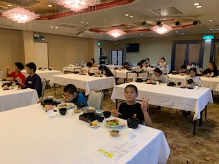夕食の時間になりました。品数がたくさんあり,充実した夕食です。