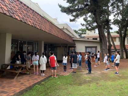 出発式では,お世話になった慶野松原荘の方にお礼を言いました。