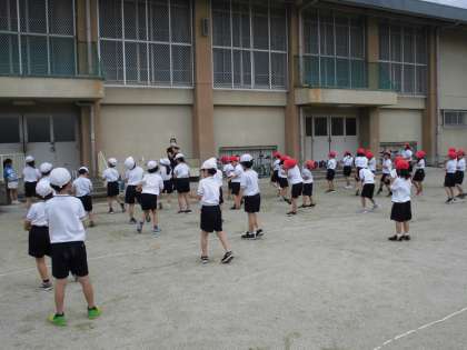 5時間目に1・2年生合同で50m走をしました。