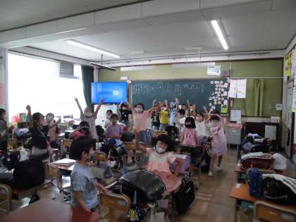 ※写真は帰りの会で喜びのジャンプをしている様子です。