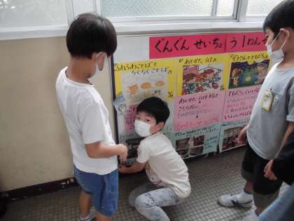 算数科「おおきさくらべ」の学習をしています。
