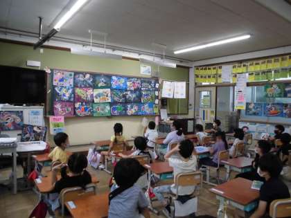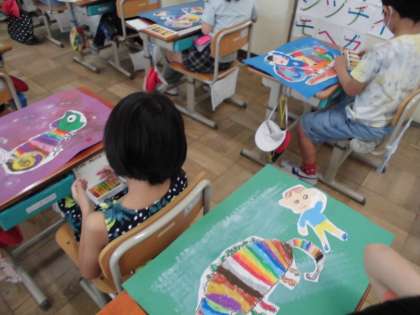 そして出来上がった絵を黒板などに貼ってみんなで鑑賞をしました。