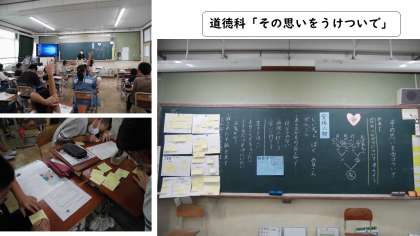 この単元では,おじいちゃんが最後に残した「しわくちゃののしぶくろ」を見たときのぼくの思いを考えることを通して,命は受け継がれていくことを知り,自他の生命を尊重し,力強く生きていこうとする意欲を高めることを目標に授業を進めました。