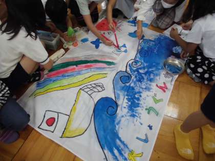 2年生のリーダーさんから教えてもらいながら,1年生も頑張っています。