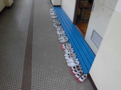 入口付近を見てみると,上靴がずらっと揃えてありました。とても気持ちがいいです。自分の靴は自分で,揃っていなかったら他の人のも…という心配りからかこのような光景が見られたことを嬉しく思います。