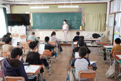 「ようこそアーティスト」という授業で,プロの漫画家を講師に招き,キャラクターづくりの学習をしました。作りたい妖怪のイメージを広げ,それを絵にしていきました。