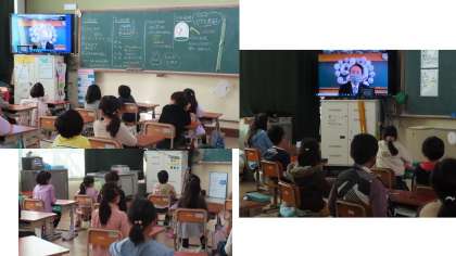 学校では,90周年をお祝いした記念式典を行いました。校長先生から学校の歴史や昔の小学生のことについてお話を聞きました。昔の小学生の好きな食べ物やテレビ番組を聞いて,自分たちのことと比べていました。また,地域の代表の方からも,みなさんのような若い力が頑張っていってほしい,これからも大将軍学区を大切にしていってほしいというお話がありました。