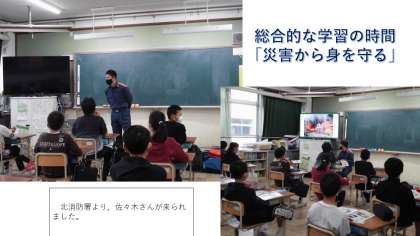 6年「総合的な学習の時間」では,災害から身を守るために私たちにできることは何かを学習しています。