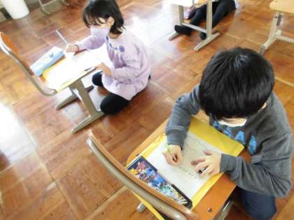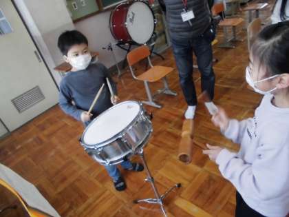 音を鳴らしながら,思わず声を出してお話をしているペアもありました。楽器の音を楽しみながら,活動ができました。クラベスと小太鼓の音が人気でした。