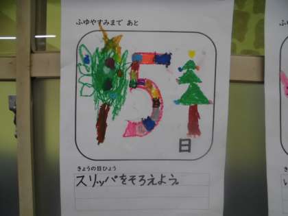 生活科「にこにこ大作戦」の学習では,冬休みに家族のためにするお手伝いの計画をしました。子ども達は,家族がにこにこする姿を想像しながら楽しそうにまとめていきました。