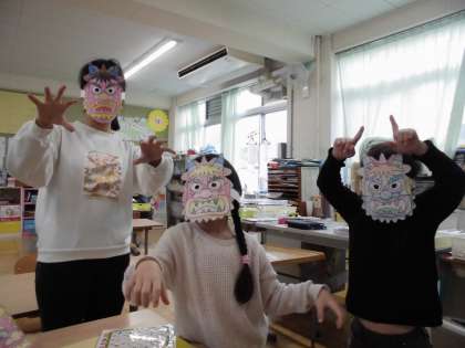 2月3日は節分の日です。これまで,なぜ節分にイワシの頭や柊を玄関に飾るのか,豆まきをするのか,絵本や紙芝居を使って学習してきました。
