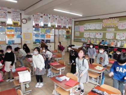学習後「体のいろいろなところからちがう音が出て面白い!」「自分の体が楽器みたいだった。」「みんなでリズム打ちをしたのが楽しかった。」とふりかえっていました。
