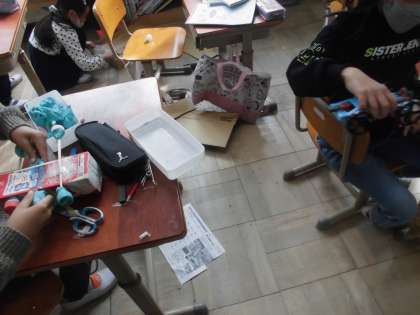 理科で学習した電気,磁石,風やゴムの仕組みを使ったおもちゃ作りをしています。ご家庭でもいろいろとご協力いただき,ありがとうございます。子ども達は,生き生きと活動しています。
