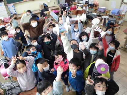 ☆ビー玉が貯まったので帰りの会で「ヨッシャー」ポーズをみんなでしました。