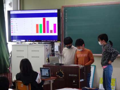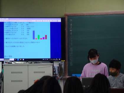 4年生は,国語科の学習で「生活調査隊」となって,クラスのみんなの生活調査を行いました。GIGA端末を使ってアンケートを取ったり,資料をまとめたりして学習を進めてきました。