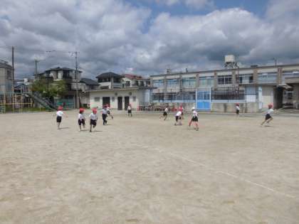 最後は,広い運動場を使って,みんなでおにごっこをしました。