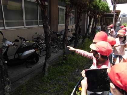 身の回りの自然には,顔に見える形があることを知り,いきいきランドや運動場に「ともだち」を探しに行きました。