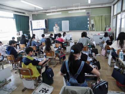 2時間目の書写の時間には,心を落ち着かせて「花」という字を書きました。