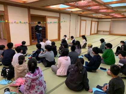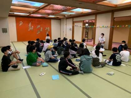 2日目の朝を迎えました。朝のつどいをしています。全員元気です。このあと朝食です。