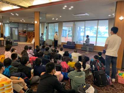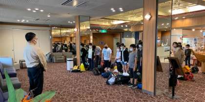 出発式をしました。お世話になった慶野松原荘の方にお礼を言いました。