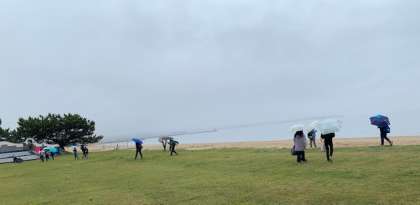 バスに乗る前に海辺を散策しました。